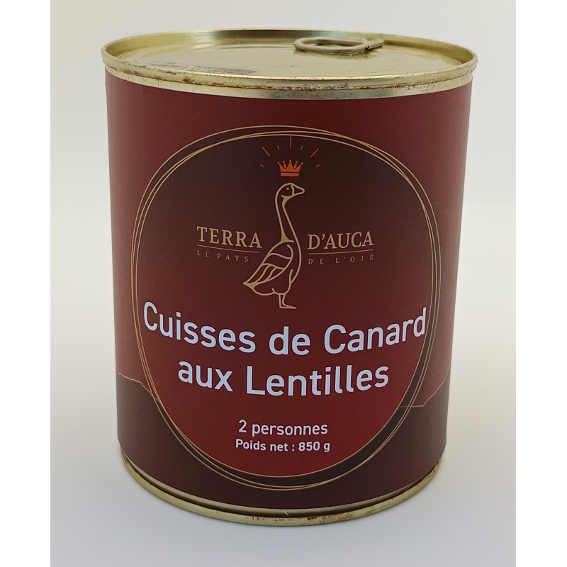 Viande de canard (cuisses), graisse de canard, lentilles, carottes, ail, sel, poivre